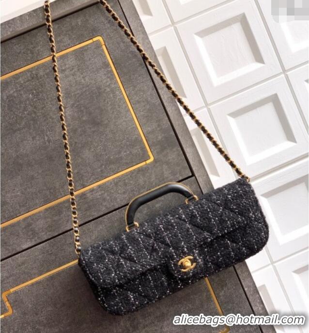 Most Popular Chanel Tweed Large Flap Bag with Top Handle AS5807 Black 2025