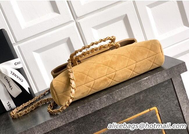New Stylish Chanel Quilted Suede Large Flap Handbag CH101001 Khaki Yellow 2025