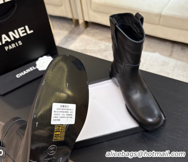 Luxury Chanel Calfskin Leather Flat Ankle Boots Black 2025 CH110401 1104004