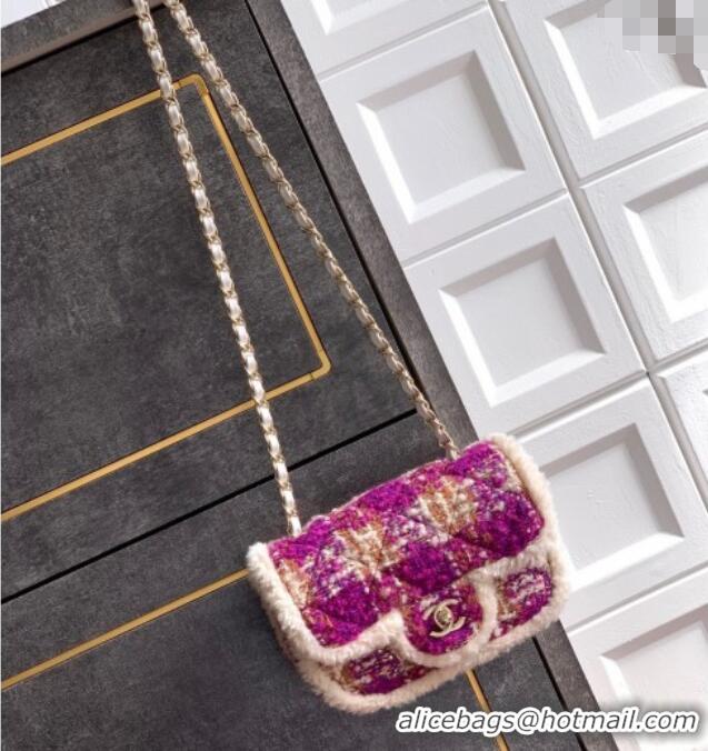 Luxury Cheap Chanel Tweed & Shearling Small Flap Bag AS5686 Fuchsia/Pink 2025