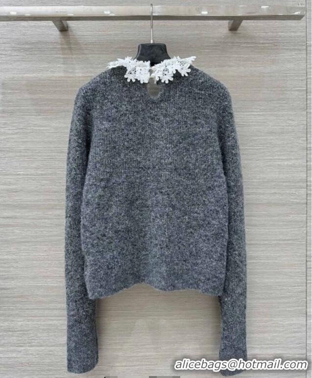Luxury Cheap Chanel Wool Mohair Sweater with Lace CH111526 Grey 2025