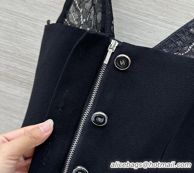 Luxury Cheap Chanel Wool and Lace Vest CH110515 Black 2025