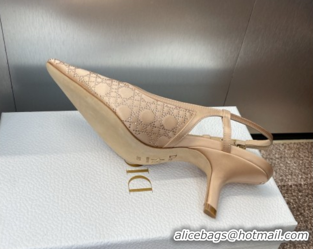 Luxury Dior Capture Slingback Pumps 6.5cm in Satin with Strass Cannage Motif Nude 0822080