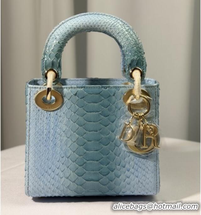 Big Discount Dior Mini Lady Dior Bag in Python Leather D123012 Light Blue/Gold 2025