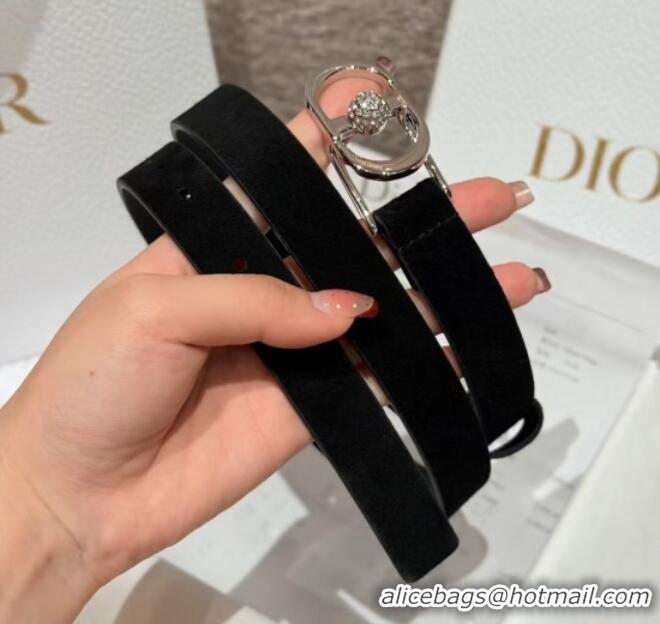 Luxury Cheap Dior Suede and Leather Belt 2cm with Strass CD Buckle 1231 Black/Silver 2025
