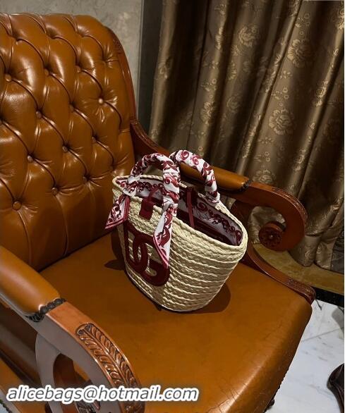 > Dolce & Gabbana Bag > Best Price Dolce&Gabbana Flower Power Small Kendra Shopper Bag in Woven Straw 7075 Burgundy 2024