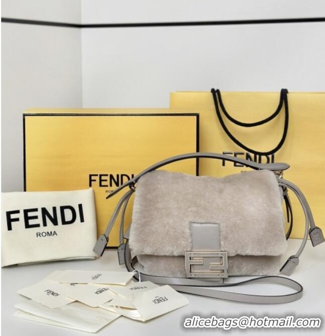 Most Popular Fendi Mamma Baguette Small Bag in Shearling 8693S Grey 2025 Top