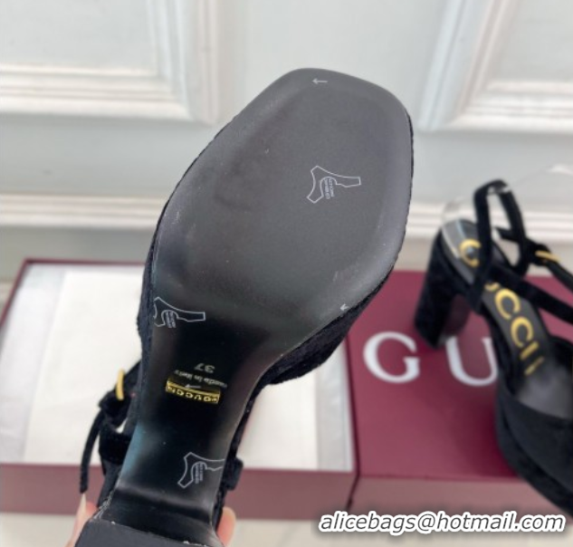 Luxury Cheap Gucci GG Velvet Platform Sandals 11.5cm with Horsebit Black GG102101 1021046