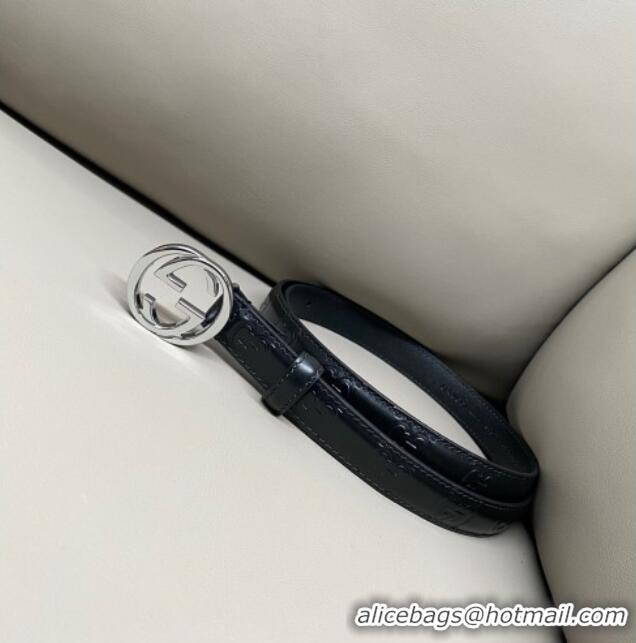 Top Quality Gucci Milano Maxi GG Embossed Leather Belt 2cm with Interlocking G Buckle GG010901 Black/Silver 2025