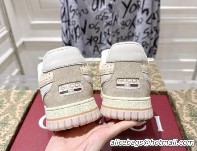 Luxury Cheap Gucci Re-Web Sneakers in GG Nylon and Suede Beige 1021018