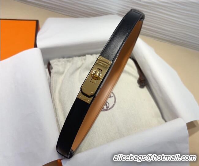 Top Design Hermes Kelly Duo Belt 1.8cm in Calfskin Leather H102202 Black/Gold 2024