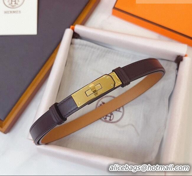 Luxury Cheap Hermes Kelly Duo Belt 1.8cm in Calfskin Leather H102202 Burgundy/Gold 2024