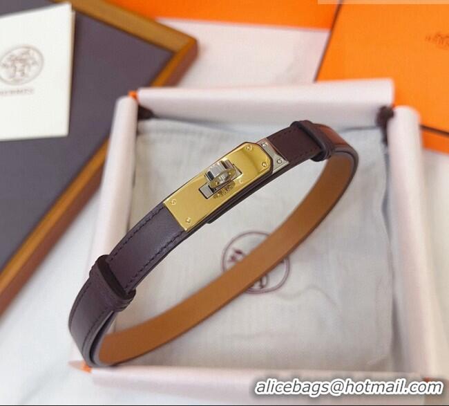 Luxury Cheap Hermes Kelly Duo Belt 1.8cm in Calfskin Leather H102202 Burgundy/Gold/Silver 2024