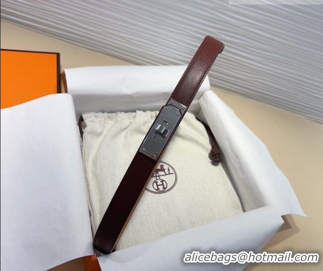 Buy Fashionable Hermes Kelly Duo Belt 1.8cm in Calfskin Leather H102202 Burgundy/Silver 2024