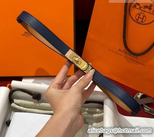 Cheapest Hermes Kelly Duo Belt 1.8cm in Epsom Calfskin H102202 Blue/Gold 2024