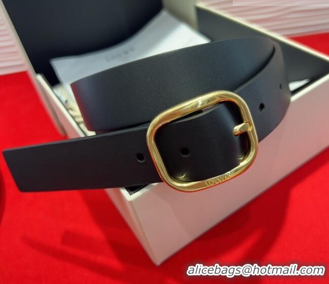 Luxury Cheap Loewe Smooth Calfskin Belt 3.2cm with Square Buckle LW091203 Black/Gold 2025
