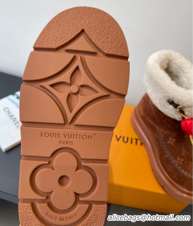 Good Quality Louis Vuitton Cortina Platform Ankle Boots in Suede and Wool Brown 1AIUEY 1219067
