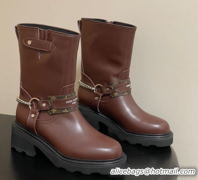 Popular Style Louis Vuitton LV Beaubourg Ankle Boots 4cm in Leather with Chain Strap Brown 1AIBQR 1022052