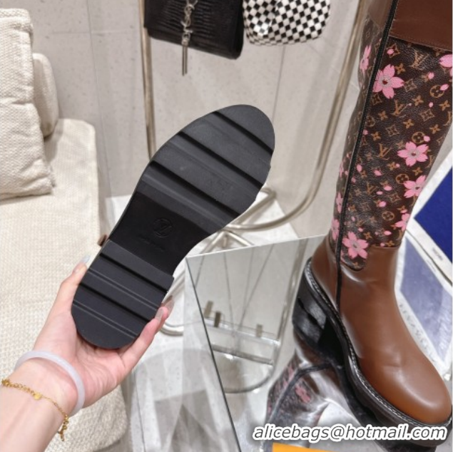 Luxury Louis Vuitton LV x TM Monogram Canvas and Leather High Boots 3.5cm with Buckle Brown/Cherry Pink LV102202 1022015