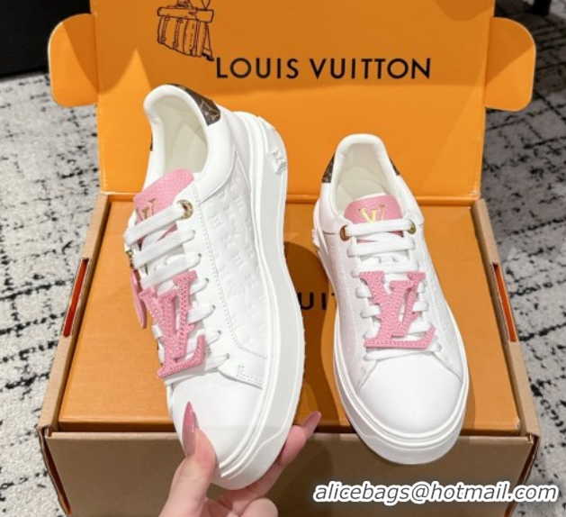 Durable Louis Vuitton Time Out Sneakers in Leather with Tag White/Pink 1022103