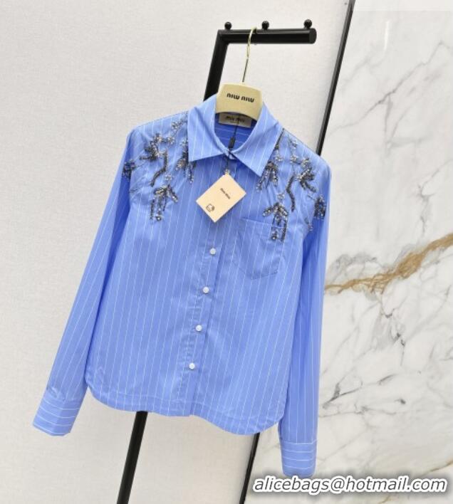 Top Grade Miu Miu Striped Cotton Shirt MM020608 Blue 2026