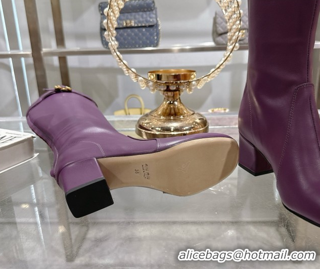 Good Product Miu Miu Nappa Leather Heel High Boots 6cm with Buckle Purple 5W548E 50826026