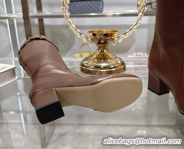 Luxury Miu Miu Nappa Leather Heel High Boots 6cm with Buckle Brown 5W548E 0826028