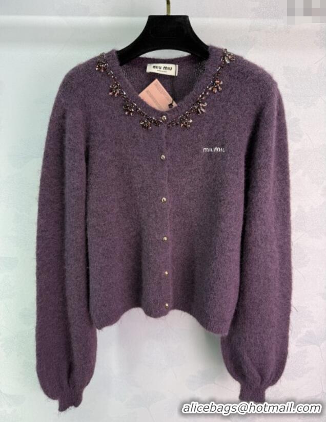 Luxury Cheap Miu Miu Wool Cardigan with Strass MM101412 Purple 2025