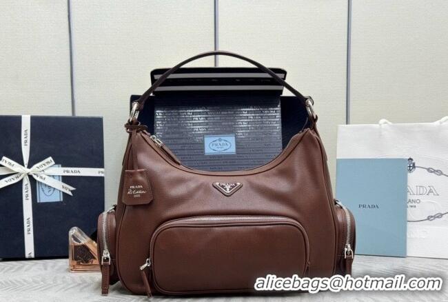 Luxury Cheap Prada Medium washed leather hobo bag 1BC276 Cocoa Brown 2026