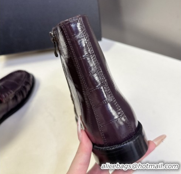 > Shoes Plaza > Yves Saint Laurent Shoes > Luxury Cheap Saint Laurent Le Flat Booties in Eel Embossed Leather Dark Brown YSL121301 1213038