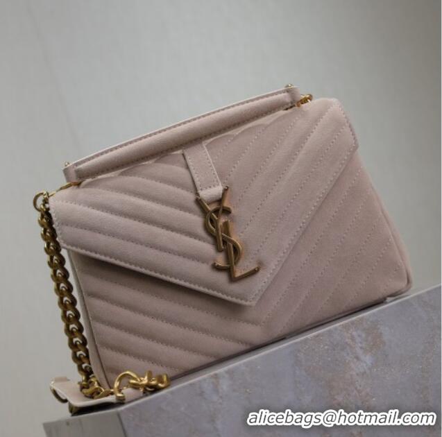 Good Looking Saint Laurent Medium Monogram College Bag in Suede 392737 Powder Grey 2025