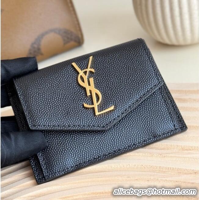 Luxury Cheap Saint Laurent Uptown Flap Card Case in Grained Leather 582305 Black/Gold 2026