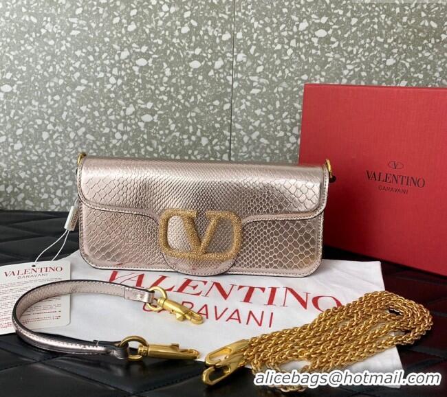 Top Quality Valentino Loco Medium Shoulder Bag in Snakeskin Embossed Leather with Strass VLTN6030 Pink 2024