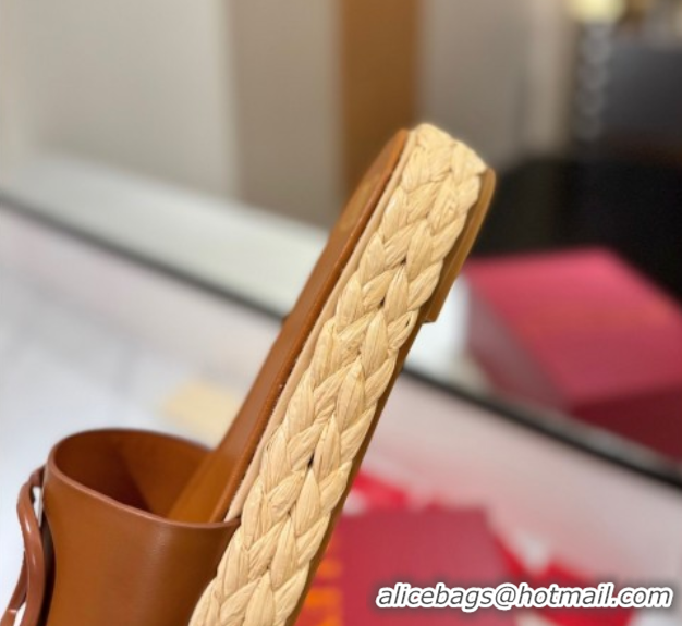 Luxury Cheap Valentino VLogo Calfskin Leather Flat Slides Sandal Brown 2025 VA082114 0821142