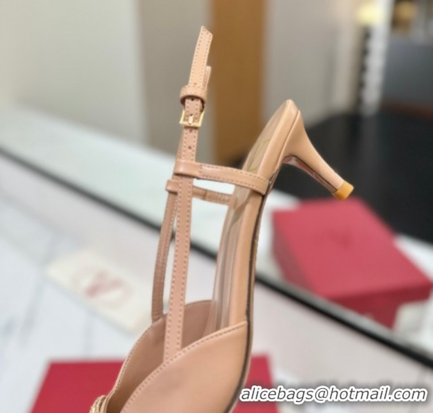 Top Design Valentino VLogo Signature Slingback Pumps 4.5cm in Calfskin with Strass Pale Pink VA082109