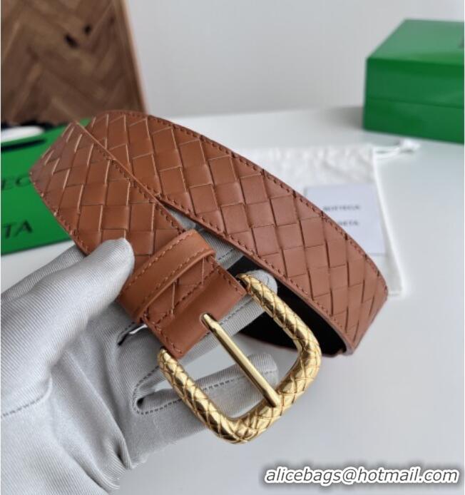 Luxury Classic Bottega Veneta Intreccio Loop Belt 3.5cm BV111729 Brown 2025