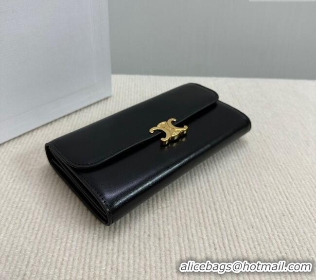 Luxury Classic Celine Triomphe Large Wallet in Shiny Calfskin 10E313 Black 2024