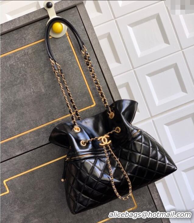 > Chanel Handbag > Chanel 2025 Bags > Luxury Classic Chanel Waxy Leather Shopping Bag CH1010 Black/Gold 2025