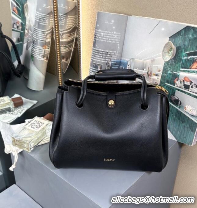 Luxury Classic Loewe Medium Madrid Bag In Supple Grained Calfskin 052451 Black 2025