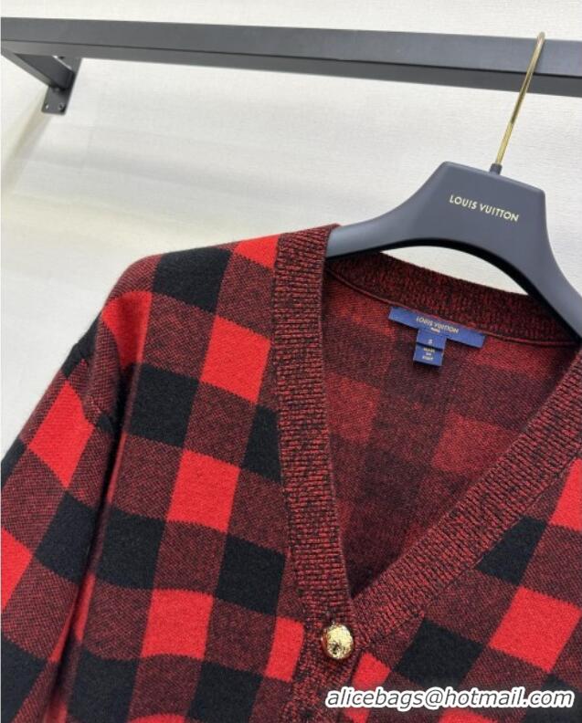 Grade Quality Louis Vuitton Wool Cashmere Blend Check Cardigan 1014 Red 2025