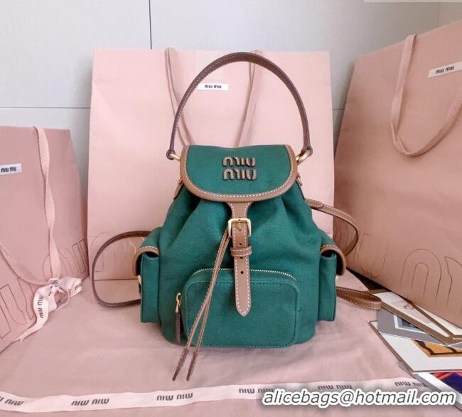 Low Cost Discount Miu Miu Canvas and leather backpack bag 5BZ043 Billiard Green 2025