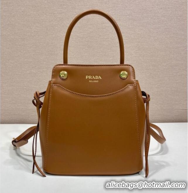 Luxury Classic Prada Carry mini leather handbag 1BA496 Cognac Brown 2026