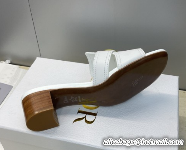 Grade Quality Dior 30 Montaigne Heeled Slides Sandal 4.5cm in Calfskin Leather with Pearl White 1217005