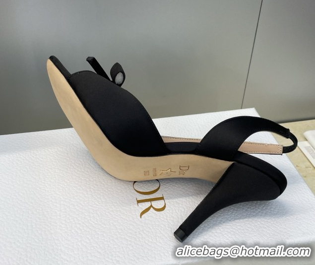 Best Product Dior Bow Satin Heeled Sandals 7.5cm Black DR121702 1217032