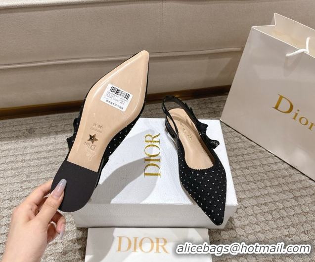 Fashion Dior J'Adior Slingbacks Ballets Flat in Strass Microcannage Cotton Black 1217050