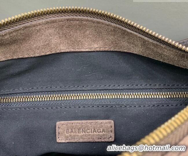 Pretty Style Balenciaga Le City Moto Small Shoulder Bag in Suede 92601 Dark Coffee 2026