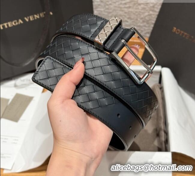 Luxury Discount Bottega Veneta Intreccio Loop Belt BV111403 Black/Silver 2025