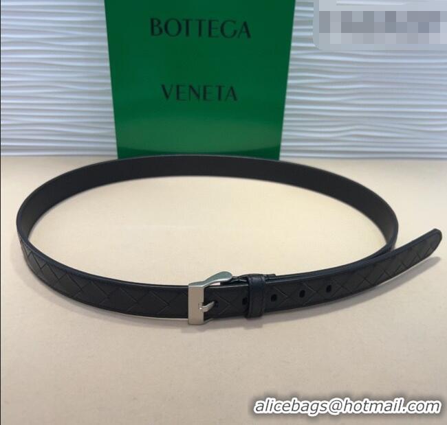 New Cheap Bottega Veneta Intrecciato Leather Belt 2cm with Pin Buckle BV26010404 Black/Silver 2025