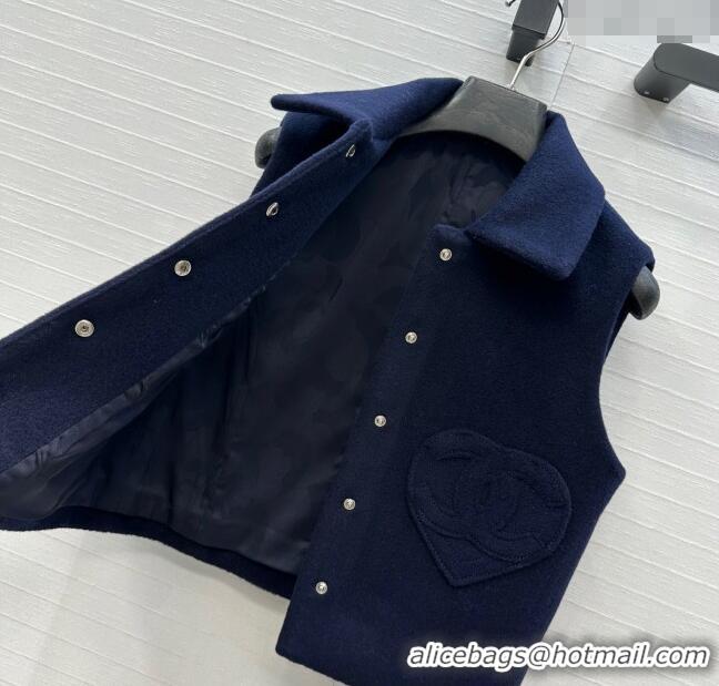 Luxury Discount Chanel Heart Wool Mini Vest CH111545 Dark Blue 2025