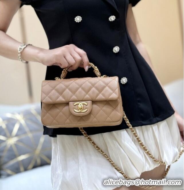 Best Price Chanel Mini Flap Bag with Top Handle in Grained Shiny Calfskin AS5701 Camel 2025 Top Quality
